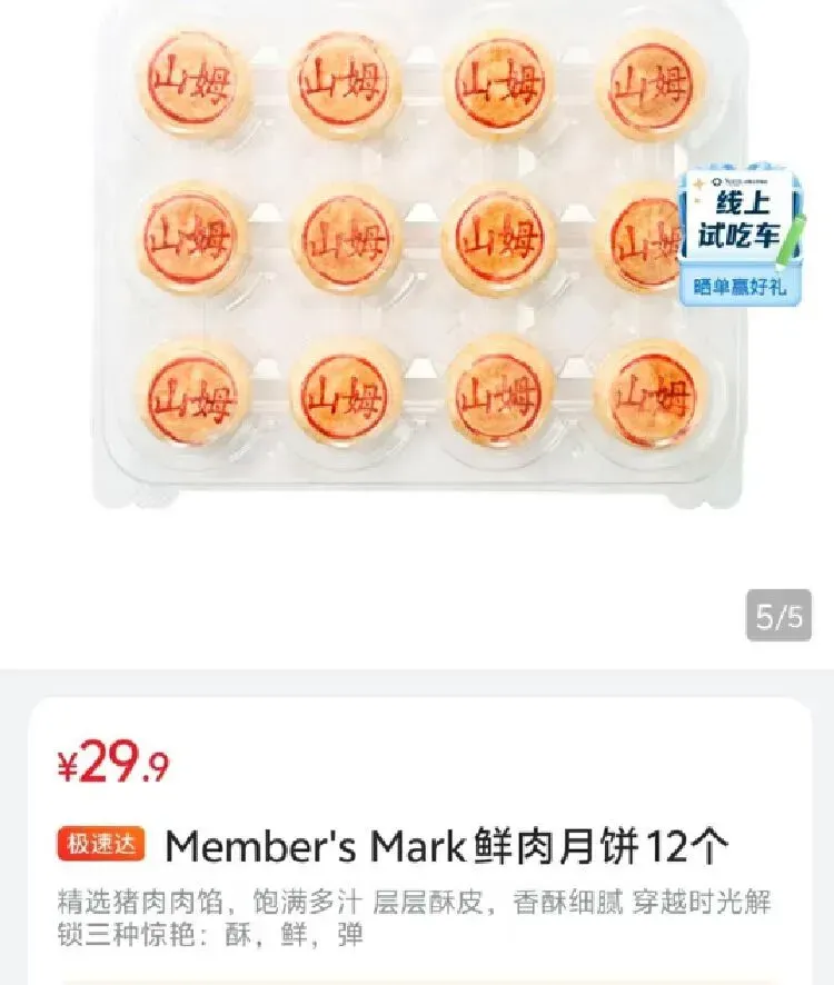 据视频画面,该款鲜肉月饼疑似山姆会员店在售的Member’s Mark鲜肉月饼,价格29.9元。