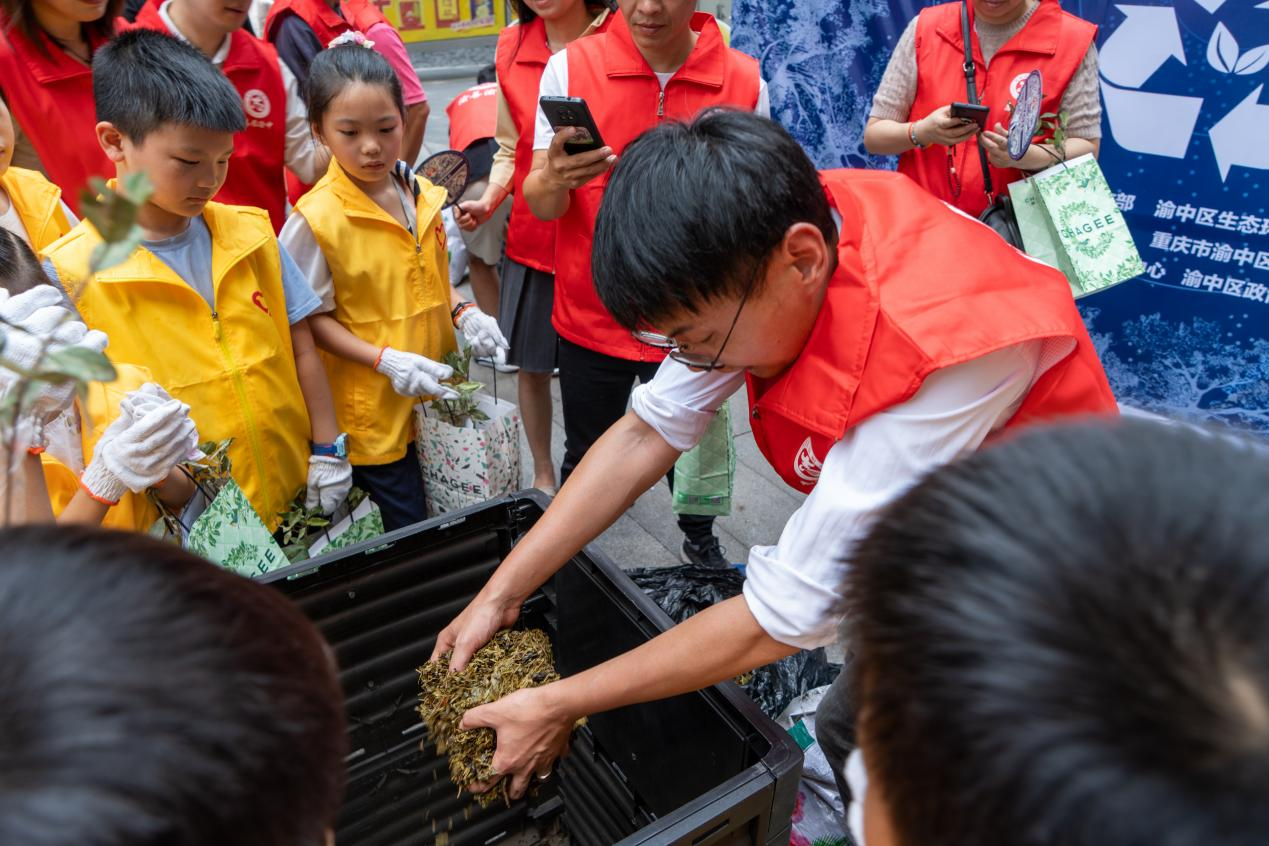“原来茶叶还能这么用”,6月7日,在重庆渝中区协信星光时代广场,不少孩子跟着家长一起参加了一场志愿活动,活动现场,孩子们惊讶于茶叶的妙用:没想到大人们喝完的茶,剩下的茶叶还能成为花肥。